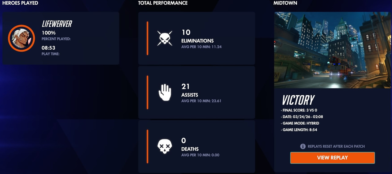 Unranked 6v6 quick play | ![]() | Overwatch: Season 1 - Midtown (Unranked: 6v6 Quick Play - Open Queue as Lifeweaver: March 24th - 2026) | Illusionist | 0 | 15 | 05:54 30th Mar 2026 | |||||||||||||||||||||||||||||||||||||||||||||||||||||||||||||||||||||||||||||||||||||||||||||