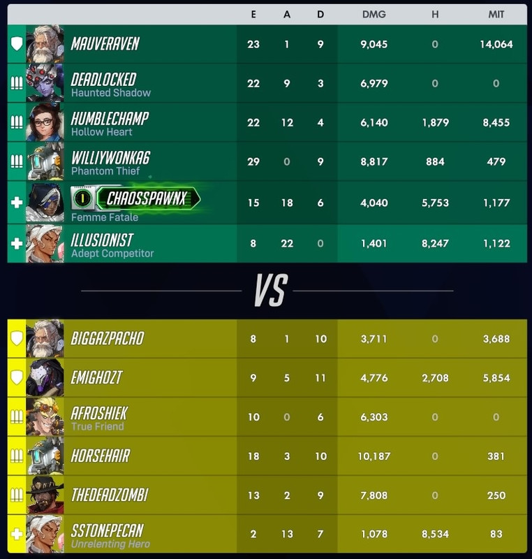 Unranked: 6v6 Quick Play (Open Queue Queue) Support: Lifeweaver (Level: 403) Outcome: Win (3-0) Ally Team: Reinhardt (Tank): E23-A1-D9⏐DMG9,045-H0-MIT14,064 Widowmaker (Damage): E22-A9-D3⏐DMG6,979-H0-MIT0 Mei (Damage): E22-A12-D4⏐DMG6,140-H1,879-MIT8,455 Bastion (Damage): E29-A0-D9⏐DMG8,817-H884-MIT479 Ana (Support): E15-A18-D6⏐DMG4,040-H5,753-MIT1,177 Lifeweaver (Support): E8-A22-D0⏐DMG1,401-H8,247-MIT1,122 VS. Enemy Team: Reinhardt (Tank): E8-A1-D10⏐DMG3,711-H0-MIT3,688 Ramattra (Tank): E9-A5-D11⏐DMG4,776-H2,708-MIT5,854 Junkrat (Damage): E10-A0-D6⏐DMG6,303-H0-MIT0 Bastion (Damage): E18-A3-D10⏐DMG10,187-H0-MIT381 Cassidy (Damage): E13-A2-D9⏐DMG7,808-H0-MIT250 Lifeweaver (Support): E2-A13-D7⏐DMG1,078-H8,534-MIT83 Verification of Scorecard: https://i.postimg.cc/4xSc7Yjs/OW-Scorecard.jpg Verification of Stats: https://i.postimg.cc/0jPKRDKr/OW-Stats.jpg Verification of Performance: https://i.postimg.cc/025KVGq0/OW-Performance.jpg