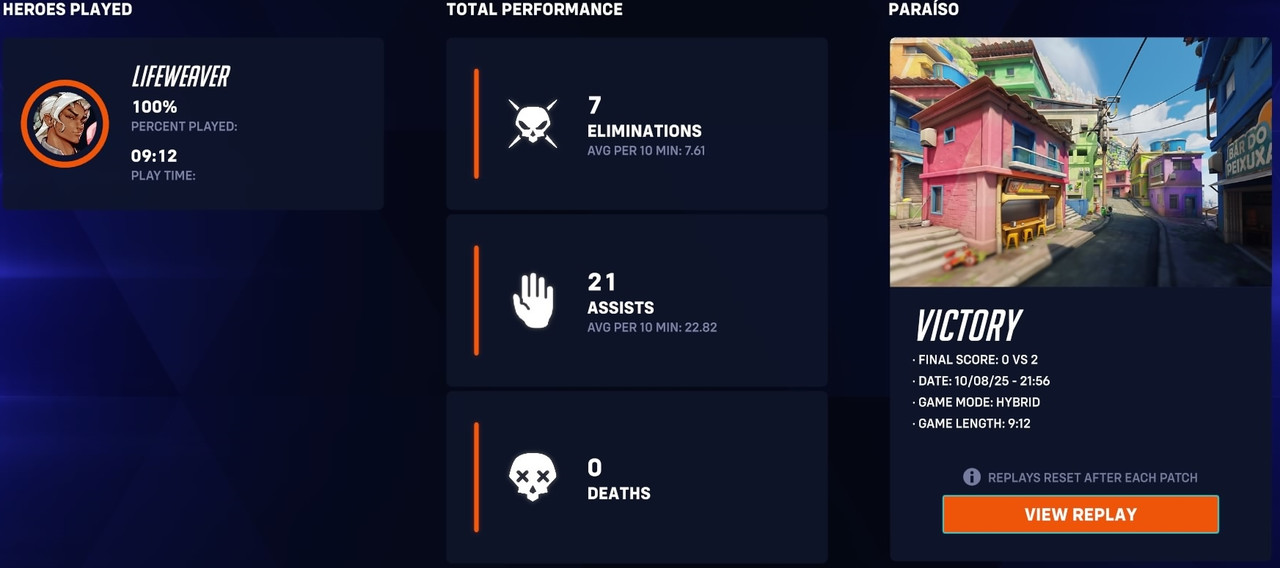 Details for replay Overwatch 2: Season 18 - Paraíso (Unranked: Role Queue - October 8th, 2025)