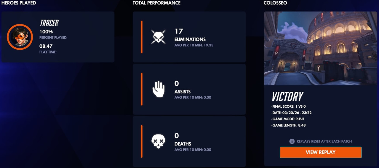 Unranked 6v6 quick play | ![]() | Overwatch: Season 1 - Colosseo (Unranked: 6v6 Quick Play - Open Queue as Tracer: March 20th - 2026) | Illusionist | 0 | 14 | 06:37 21st Mar 2026 | |||||||||||||||||||||||||||||||||||||||||||||||||||||||||||||||||||||||||||||||||||||||||||||