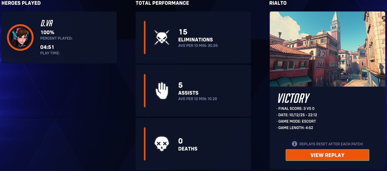 Details for replay Overwatch 2: Season 18 - Rialto (Unranked: Role Queue - October 12th, 2025)